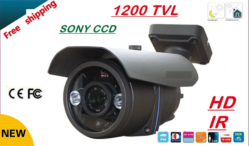 HIGH QUALITY Free shipping NEW 1/3" SONY CCD HD 1200TVL Waterproof Outdoor security camera 2 Pcs array led IR 80