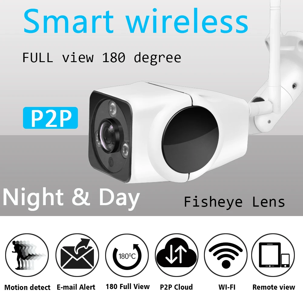 OUERTECH 180 Degree Panoramic 1080p 2.0MP Fisheye Waterproof IR Night Vision outdoor WIFI Smart bul